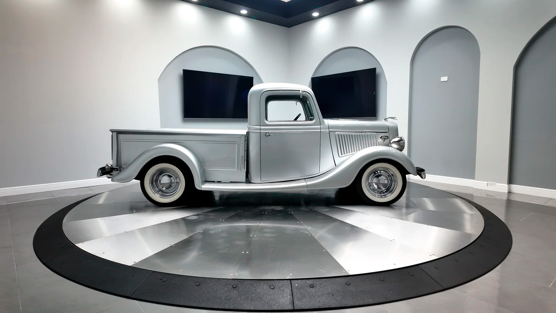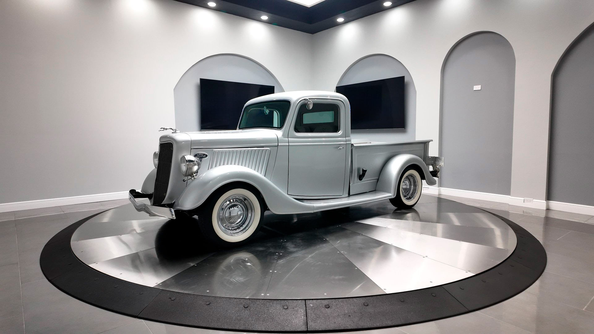 1936 Ford PickupDetails Engine Size: 350 V8 Transmission Type: Automatic Miles: 2513 Body Style: Pickup Body Colour: Silver Stock #: 7014 VIN: BBA161630450